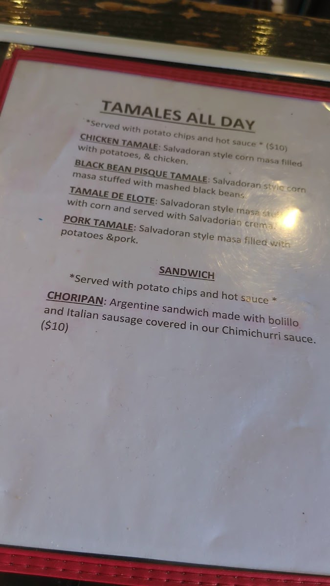 If you're feeling a bit adventurous, try one of their delicious Tamales. The Chicken Tamale, packed with savory chicken and potatoes, is a must-try at $11.50. Alternatively, the Pork Tamale offers a beautiful blend of spices that create a comforting, savory bite. Vegetarians can indulge in the Black Bean Pisque Tamale or the Tamale De Elote, both of which are equally delightful.
