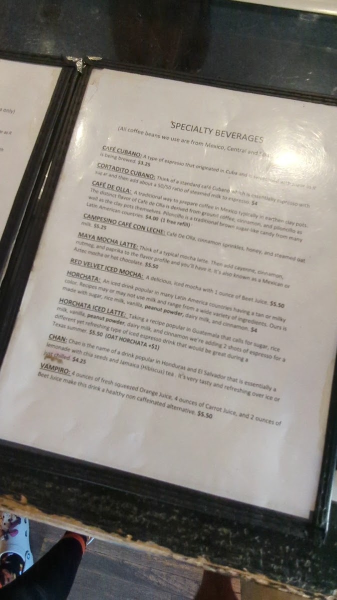 The true magic happens when it comes to the menu. Campesino specializes in unique offerings that reflect traditional Latin flavors. Savor their Cortadito Cubano, a delightful fusion of rich espresso blended with steamed milk, served with just the right amount of sugar for that perfect sweet balance at only $4.60. For an authentic Mexican experience, don't miss their Café De Olla, brewed in traditional earthen clay pots and infused with cinnamon and piloncillo, which enhances its robustness in flavor.